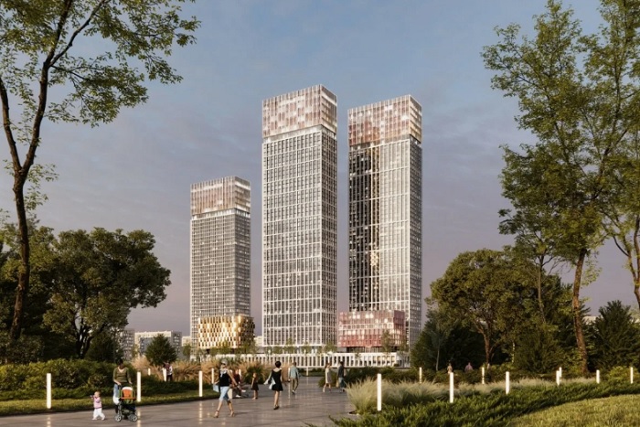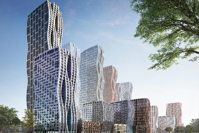 200-метровый небоскреб "Jois" (55 этажей) от компании "MR Group" и архитектурного бюро "Genpro" строится в Хорошево-Мневниках. Два корпуса жилого комплекса имеют необычный U-образный силуэт и объединены стилобатной частью – она отводится под объекты инфраструктуры. Современность и стильность подчеркивают фасады, выполненные из стекла и металла. Кроме того, на территории комплекса планируется оформление большого ландшафтного парка. Самая маленькая студия имеет площадь 25.5 квм, цены стартуют от 360000 рублей за кв. метр. Окончание строительства заявлено на конец 2027 года.