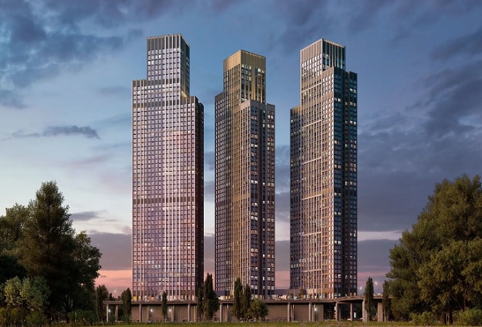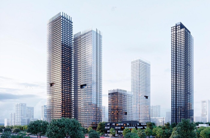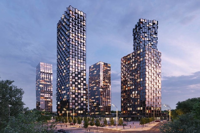 Такая же высота (186 метров, 53 этажа) будет во втором корпусе комплекса "Level Мичуринский" от "Level Group". Строится он в районе Очаково-Матвеевское по проекту бюро "СПИЧ". Концепция фасадных решений – вода, которая отражает солнечный свет. Недвижимость площадью от 18.6 кв. метров можно приобрести по цене от 344000 рублей за кв. метр. Построен комплекс будет к середине будущего года.