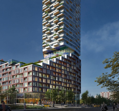ЖК «Level Звенигородская» от Level Group строится в районе Хорошево-Мневники. В двух «башнях» высотой в 48 и 64 этажа предлагается 1114 квартир по цене от 334000 рублей за кв. метр. Здесь представлена линейка лотов от студий по пятикомнатных. Построен комплекс будет к 1 кварталу 2027 года.