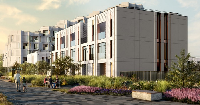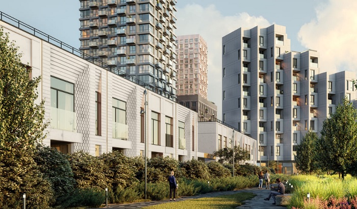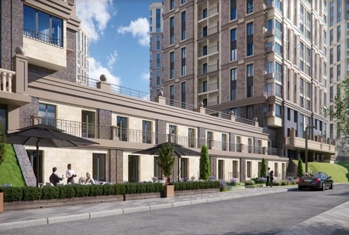- ЖК "Alia" от ООО "Резиденс" – крупный проект бизнес- класса в СЗАО, в районе Покровское-Стрешнево. Здесь представлено два формата сблокированной застройки. Первое – это блок классических двухэтажных таунхаусов с площадью секции от 165 до 191 кв. метров. Он построен и сдан в эксплуатацию, приобрести лот с черновой отделкой можно за 93 млн. рублей. Второй вариант – так называемые сити-юниты – двухуровневые квартиры на первых этажах высотных зданий. Они имеют отдельные входы и небольшие палисадники с живой изгородью. Такие квартиры входят в третью очередь строительства, сданы они будут в конце 2025 года.