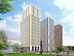 Многофункциональный комплекс «Водный» находится в Северном административном округе Москвы, на пересечении Головинского шоссе и Кронштадтского бульвара. В рамках второй очереди проекта возводится комплекс апартаментов — пять башен по двадцать шесть этажей, образующих единую территорию и внутреннее пространство. Здесь предлагаются апартаменты от 41 до 97 кв. м и стоимостью от 5,3 млн руб., что является уникальным для Москвы предложением.