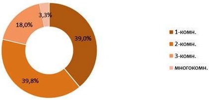 Структура предложения по количеству комнат по сравнению с сентябрем практически не изменилась. Преобладают однокомнатные квартиры - 39%, доля двух- и трех-комнатных составила 39,8% и 18%.