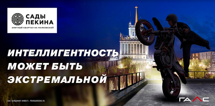 В рамках нового рекламного флайта в эфир радиостанций «Бизнес FM», «Вести FM», «Коммерсант FM», «Маяк», Jazz, «Радио 7» выйдет более тысячи роликов. Совместно с продакшн-студией Renome.PRO создана серия игровых видеороликов в формате экстремальной экскурсии на мотоцикле, сюжет которой разворачивается в элитных кварталах компании «Галс-Девелопмент». Исполнителем мототрюков стал каскадёр, стантрайдер, гуру мотоциклетного спорта Марат Канкадзе. Рекламная кампания продлится до ноября 2018 года.