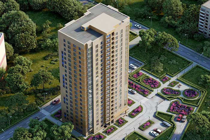 Новостройка находится в Лосиноостровском районе северо-восточного округа столицы. Дом представляет собой современную 21-этажную башню с витражным остеклением и фасадами, отделанными керамогранитом. В здании сейчас ведутся последние отделочные работы в холле, который будет украшен декоративными элементами.