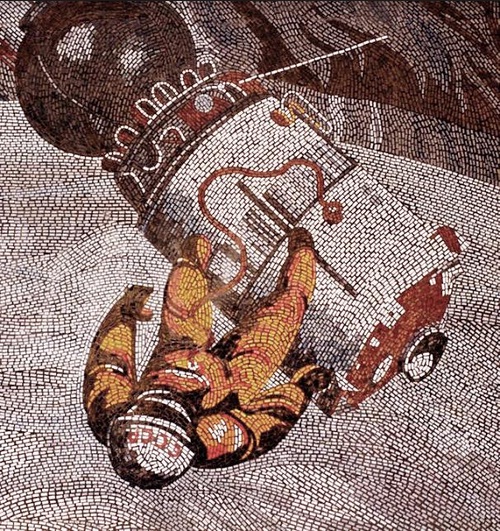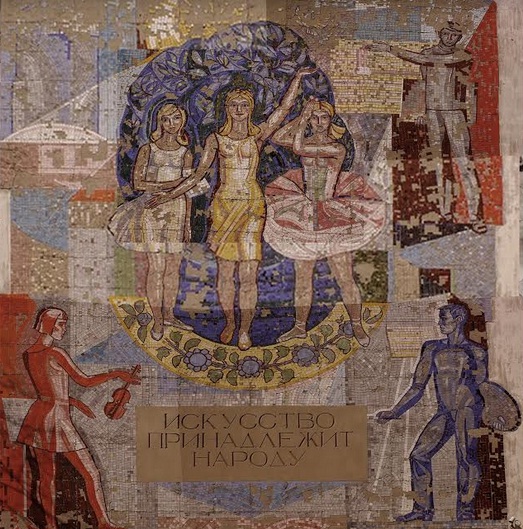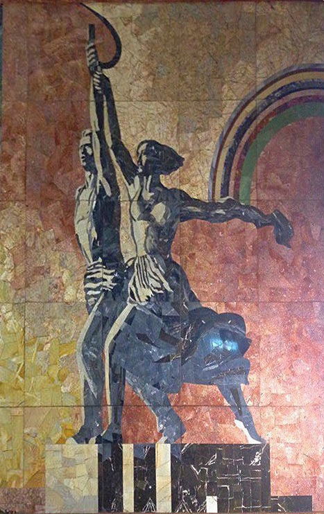 Мозаика – монументальный памятник имперского стиля XX века, в данной технике работали такие известные художники, как Александр Дейнека, автор серии мозаик, украшающих станцию метро «Маяковская» в Москве, и Владимир Фролов. Фасады советских зданий – школ, детских садов, домов культуры часто украшались художественными панно с изображением героев труда, сцен из жизни советского народа.