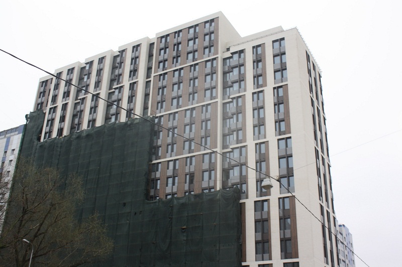 Апарт-комплекс "Волга" — проект застройщика "Шатер Девелопмент". Срок его сдачи переносился с 2017 на II кв. 2018, но еще идут фасадно-отделочные работы.