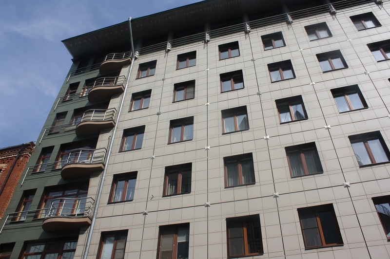 Апарт-комплекс "Клубный дом на Сретенке" от застройщика "Лидер-Инвест" уже сдан, но еще идут какие-то доделки на нижнем уровне. 8-этажное монолитное здание на 67 апартаментов оборудовано подземным двухуровневым паркингом на 91 машиноместо с автоматизированной системой допуска. Над созданием архитектурного облика работало бюро "Цимайло, Ляшенко и партнеры".