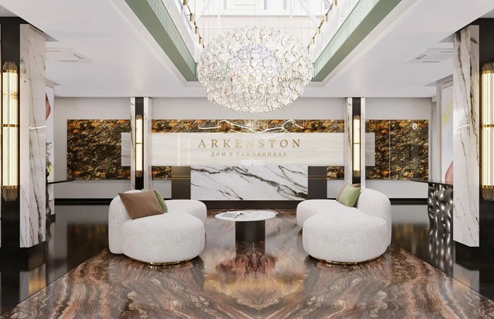 Новый проект в Хамовниках -- жилой дом «Arkenston», результат бережной реконструкции здания 1930 года. Удивительным стало сочетание старинного облика здания и современной технической начинки, где были заменены все инженерные коммуникации и полностью обновлены внутренние пространства. Фасад и входная группа продуманы до мелочей. Это неоклассический взгляд на конструктивизм, камерная, вписанная в среду архитектура. Клубный дом — здание в историческом районе Москвы с 37 уникальными апартаментами, где в оформление интерьеров используют натуральные отделочные материалы и ценные породы камней.