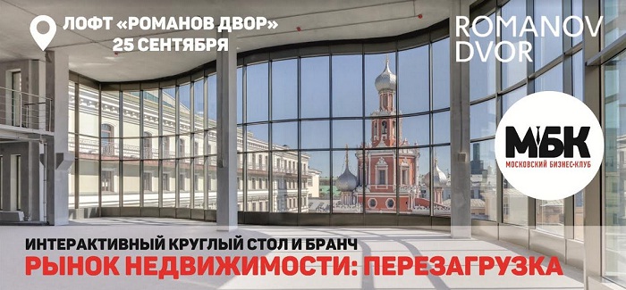 25 сентября Московский Бизнес Клуб приглашает Вас принять участие в ежегодном деловом и дружеском мероприятии - интерактивном круглом столе и бранче: «Рынок недвижимости: перезагрузка», который состоится в Лофте «Романов Двор».