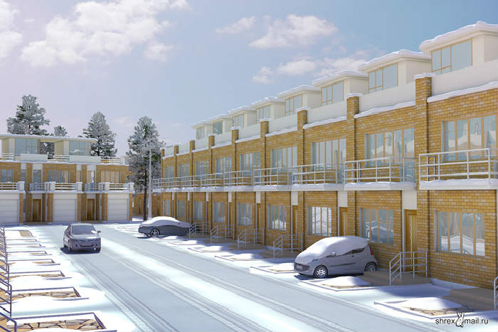 Под застройку малоэтажными зданиями был выделен участок 7,8 га, на котором застройщик планирует разместить до 400 таунхаусов. Дома строятся из зарубежных газоблоков, кровля будет эксплуатироваться, а фасады зданий будут облицованы кирпичом. Таунхаусы высотой в три этажа будут объединены в блоки по пять-десять секций.