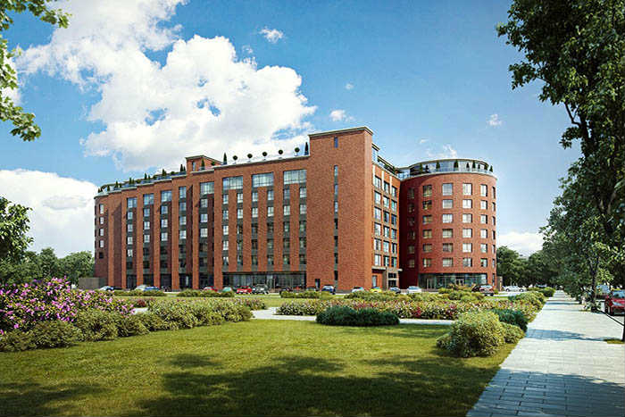 Восьмиэтажное здание, выдержанное в популярном стиле «лофт», уже практически готово. В нем, помимо жилых апартаментов, разместится весьма обширная инфраструктура, включающая офисные помещения, собственную пекарню, кафе и ресторан, салон красоты и супермаркет. Для автовладельцев будет оборудован подземный отапливаемый паркинг.