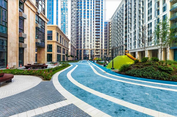 Летом 2019 года ГК «Галс» успешно завершила реализацию коммерческих площадей (1,7 тыс. кв. м) – здесь появятся супермаркет, ресторан, салоны красоты, аптеки, бытовые сервисы и др. Внутренний двор квартала площадью 4,5 тыс. кв. м разделен на две зеркальные части. Здесь обустроены детские игровые комплексы с горками и качелями, беговая дорожка, тренажеры и зона воркаута. Композиционный центр двора – площадка для праздников. На территории организована высадка деревьев и кустарников.