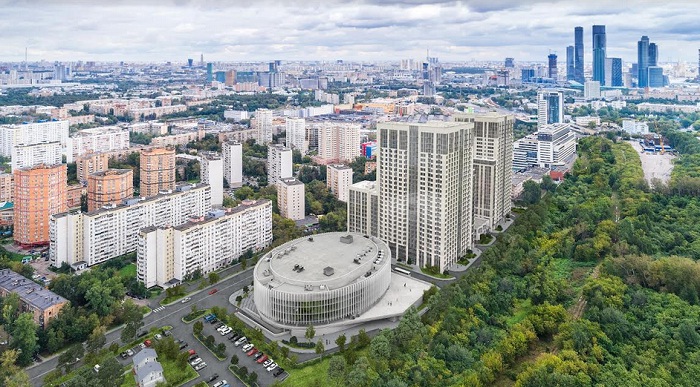 Жилая часть включает 1545 апартаментов бизнес-класса с панорамными видами на Москву. Интерьер общественных зон выполнен по авторскому проекту с применением стекла, дерева, металла и камня. Входные группы оборудованы стойками ресепшн из натурального дерева, комфортной зоной ожидания с мягкой мебелью. Во всех секциях установлены бесшумные скоростные лифты марки OTIS.