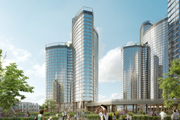 На прилегающей к домам территории застройщику предстоит провести благоустройство: здесь появится спортивная зона, площадка для отдыха и детский игровой городок. На открытых стоянках предусмотрены дополнительные парковочные места для автотранспорта. В составе квартале кроме жилых небоскребов построят детский сад на 240 детей и школу на 550 учеников.