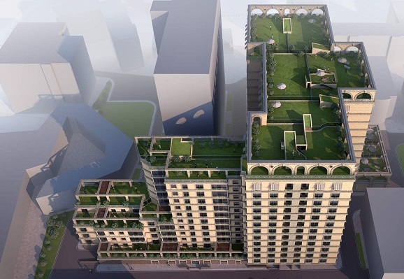 В доме на продажу будет выведено 183 квартиры с высокими потолками до 4 метров и различными вариантами планировок. На данный момент в доме завершается облицовка фасадов натуральным камнем и ведется отделка мест общего пользования плитами из мрамора и дерева.
